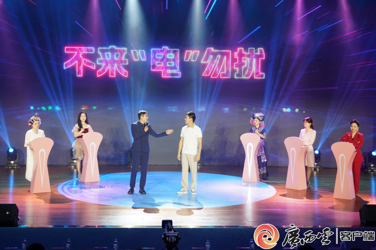 南方电网广西电网公司带来的主题分享《不来“电”勿扰》创新采用相亲真人秀模式,女嘉宾根据男嘉宾解码涉“电”谣言的专业表现,决定是否释放心动“信号”,让网络辟谣成为情感连线的特殊“考题”。广西日报-广西云客户端记者 韦澍睿 摄