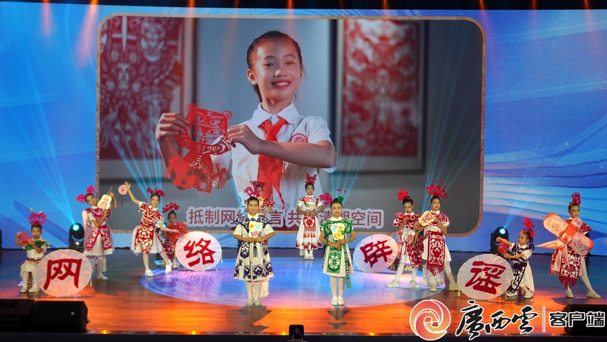 兴业县委网信办、兴业县第三实验小学表演的主题剪纸秀《清谣剪影》。广西日报-广西云客户端记者 韦澍睿 摄