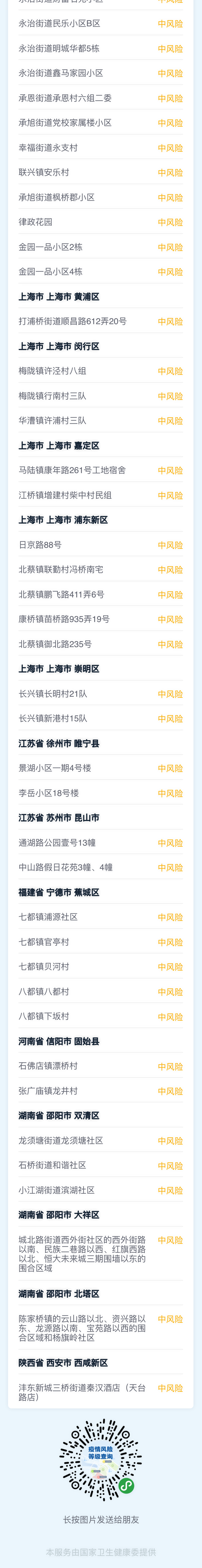 全国疫情风险地区