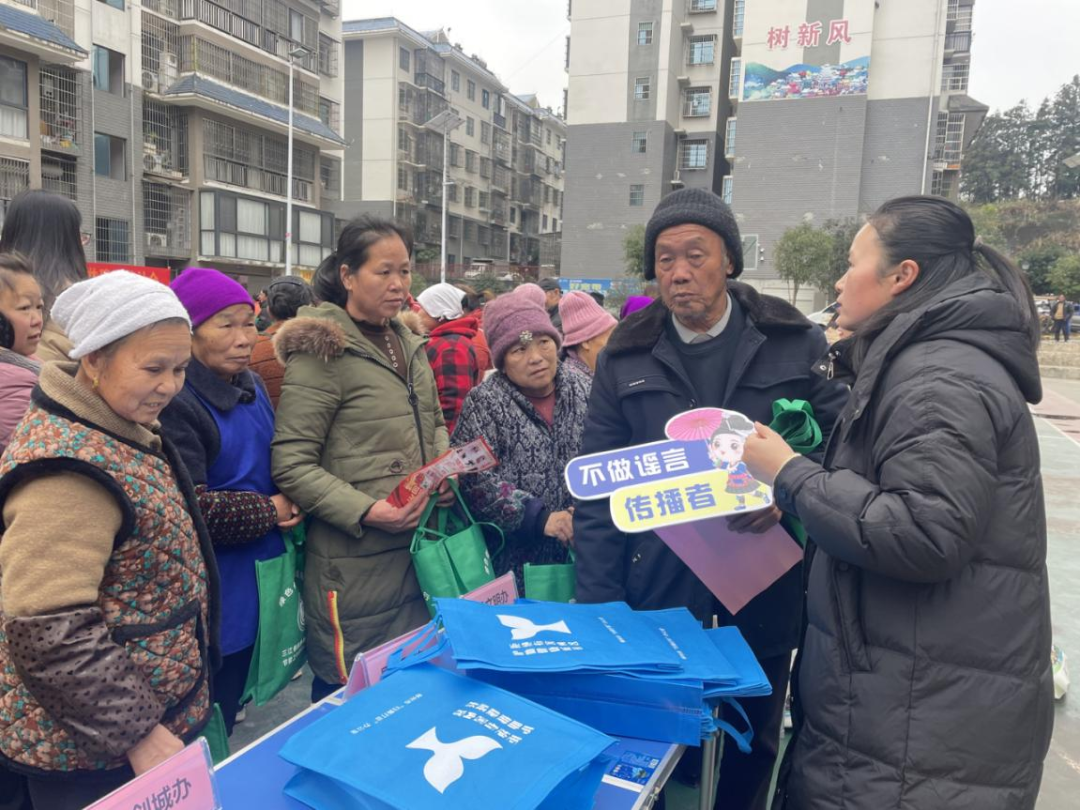 1月23日下午,柳州市三江县委网信办开展的“提升网络素养 共建清朗空间”主题宣传活动在三江县古宜镇富安家园小区文化活动广场热烈进行。此次活动旨在面向基层社区,特别是搬迁安置群众,普及网络辟谣与网络安全知识,增强居民识谣辨谣、防范网络风险的能力,营造健康、文明的社区网络环境。