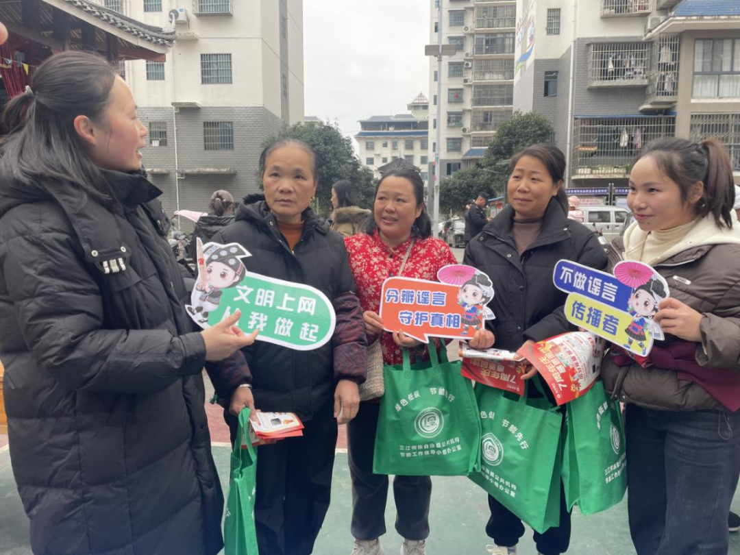 活动现场,县委网信办工作人员通过发放宣传手册、现场讲解咨询以及互动问答赠送小礼品等多种形式,向小区居民生动展示了网络谣言的常见类型、传播特点及社会危害。工作人员结合近期县内及周边地区出现的典型网络谣言案例,用简单易懂的侗族语言剖析谣言产生和传播的套路,教授侗乡居民如何通过核实信息来源、关注官方通报、利用权威平台查证等方式有效辨别谣言,做到不造谣、不信谣、不传谣。