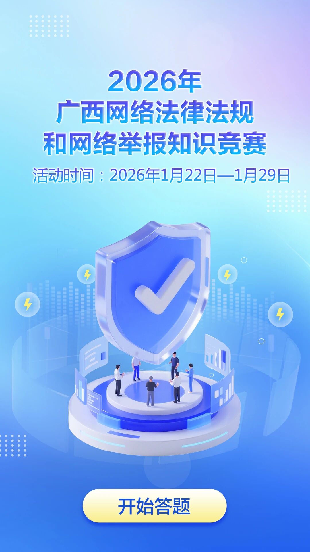 为引导网民树立“不造谣、不信谣、不传谣”理念,养成文明上网、主动举报互联网违法和不良信息和网上依法维权的良好习惯,1月22日-29日,广西网信办联合广西云数字媒体集团,成功举办2026年广西网络法律法规和网络举报有奖知识竞赛。