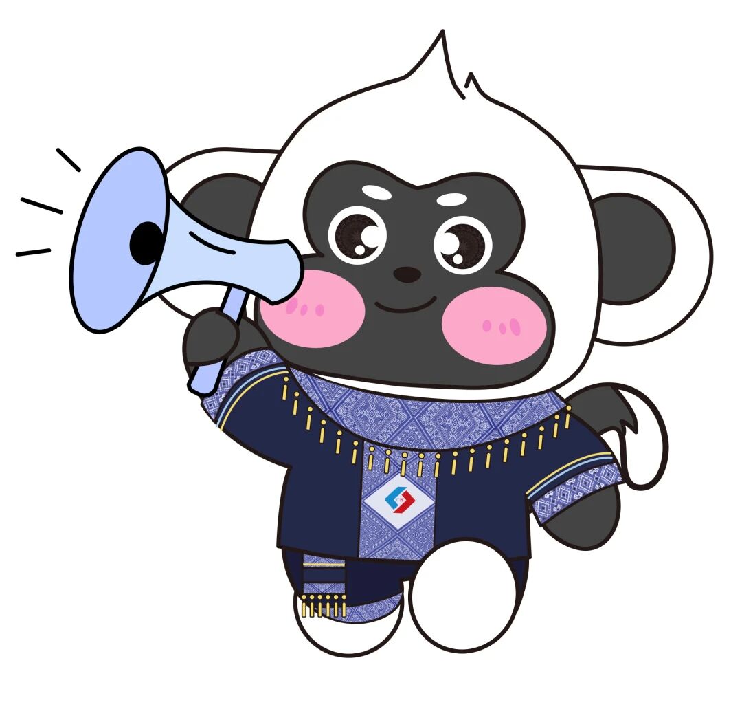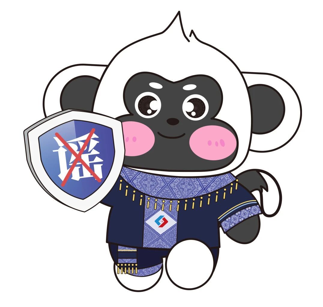IP形象以广西特有的灵长类动物白头叶猴为原型,保留标志性白色冠毛、黑白分明的特点,瞳孔为铜鼓纹样,强化眼部设计为“真相之瞳”,象征洞察力。身着具有广西特色的壮锦服饰,以广西互联网违法和不良信息举报中心LOGO标志作为点睛“护心镜”,象征抵挡谣言信息刀枪不入。
