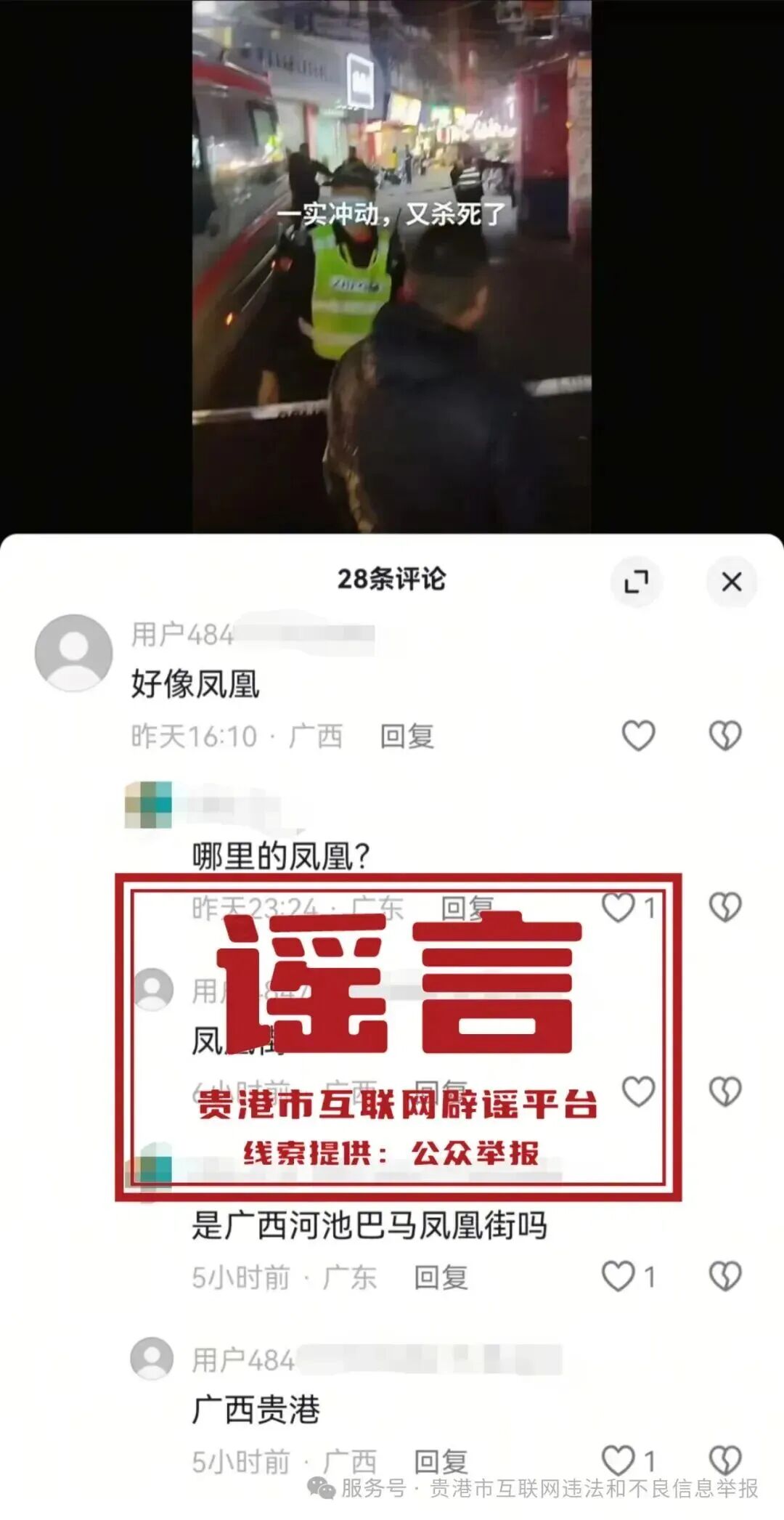 2025年1月15日,有网民在短视频平台发布一段民警警戒执勤的视频,并配文“一时冲动,又杀死了”,评论区称事发地为贵港市港北区凤凰街。
