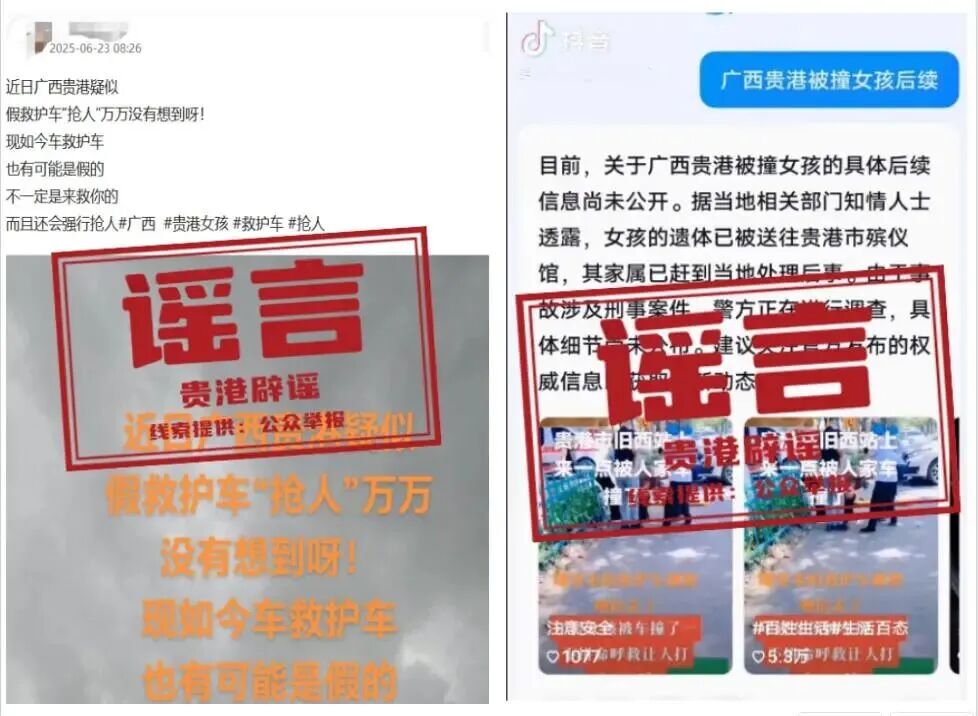 2025年6月23日,网络上流传“贵港‘假救护车’抢人”“贵港女孩被120强制带走后死亡”等相关内容。