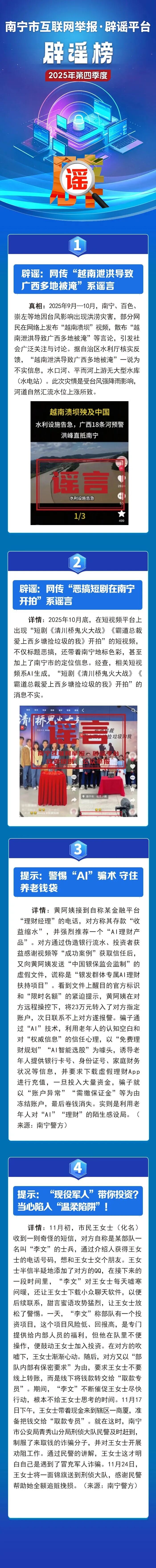 南宁市互联网举报·辟谣平台2025年第四季度辟谣榜发布