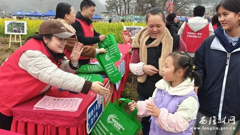 “袍汤节”是隆林汉族同胞重要的传统节日,群众参与度高、现场氛围浓。自治县党委网信办抓住这一契机,将宣传阵地前移至节日现场,通过发放手册、方言讲解、趣味问答、赠送实用小礼品等方式,吸引了大量村民驻足参与。