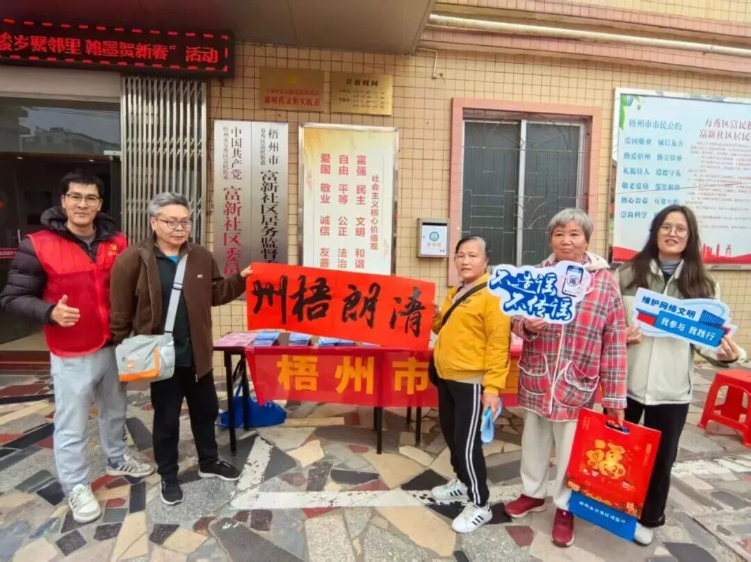 岁序常易,华章日新。为进一步提升社区居民网络素养,增强辨别网络谣言的能力,营造清朗网络空间。2月10日,梧州市委网信办走进万秀区富新社区,开展“古郡新风 · e语求真”主题宣传活动,以群众喜闻乐见的形式,将网络文明理念送到百姓身边。