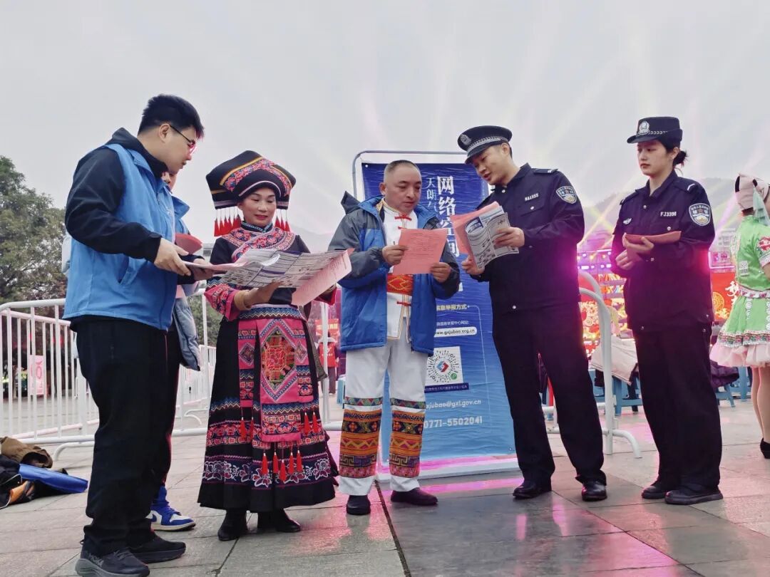 活动以春晚主会场为核心,在入口处、观众候场区精心设立宣传咨询台、布置主题宣传展板。由县委网信办、县公安局网安大队工作人员及志愿者组成的护网安边宣传小分队,主动向入场群众和演职人员发放“网络中国节·清朗过大年”倡议书,结合本地近期典型案例,用壮汉双语通俗易懂地讲解网络谣言辨识技巧、网络安全防护要点,详细介绍12377网络举报平台的使用方法与流程,引导群众自觉抵制网络谣言,主动举报不良信息,鼓励人人参与网络空间治理,争做清朗家园守护者。现场专设咨询答疑区,针对个人信息保护、跨境网络诈骗防范等群众关切的问题,逐一耐心解答,切实回应民生诉求。