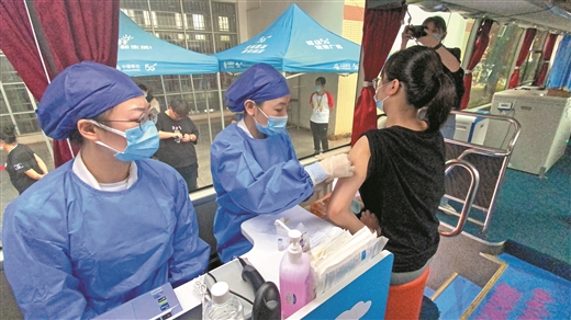 移动接种车为南宁师范大学师园学院的师生接种疫苗。 南国早报记者 苏华/摄