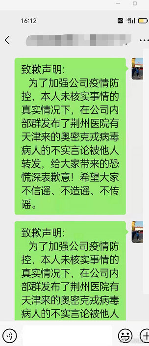 近日,江陵县某公司冉某某发布的一则消息,引起网友转发讨论。经查证,此紧急通知为假消息。随后,冉某某发布致歉声明,承认发布不实言论。