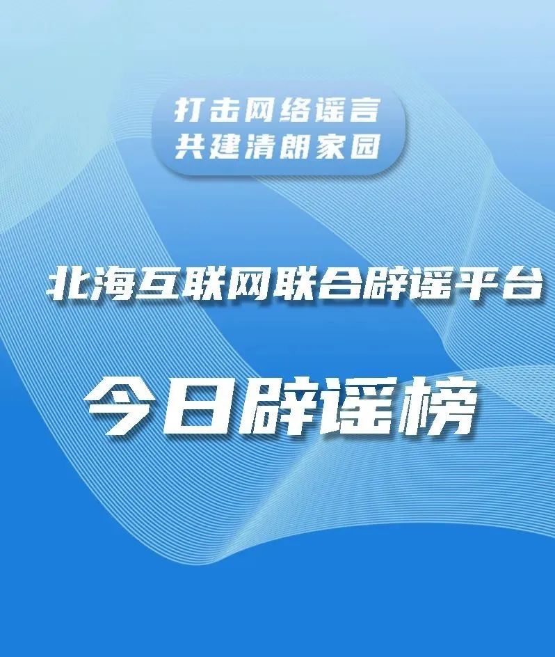 网络空间是亿万民众共同的精神家园,为建设清朗网络空间,“网信北海”聚焦网民关切,整理近期谣言,推出今日辟谣榜。谣言止于智者,希望各位网民不信谣、不传谣、不造谣,共筑网上美好精神家园!